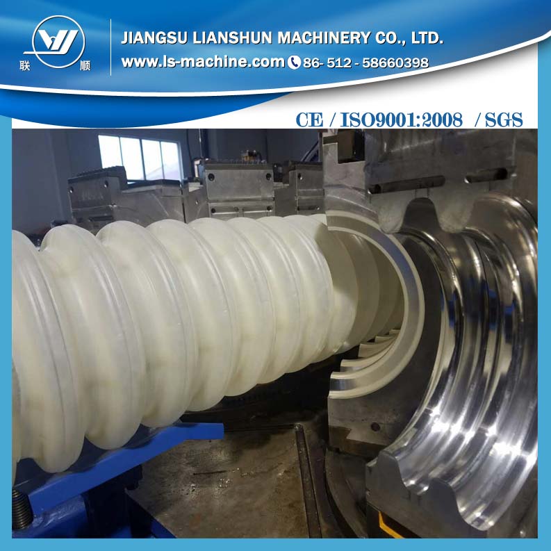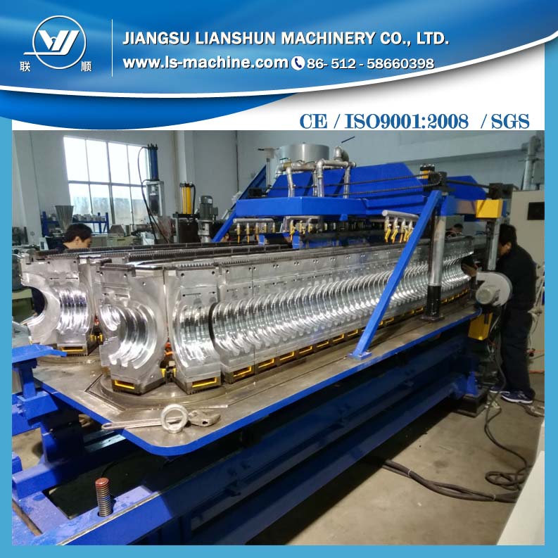 該生產(chǎn)線是以HDPE/PP為原料,所生產(chǎn)的雙壁波紋管內(nèi)壁光滑平整,外壁呈梯形波紋狀,除了具有普通塑料管所具有的耐腐蝕性好、絕緣性高、流動(dòng)阻力小等特點(diǎn)以外,還因特殊的內(nèi)外壁中空環(huán)形結(jié)構(gòu),使其具有環(huán)剛度大、質(zhì)量輕、耐高壓、韌性好、耐磨、耐沖擊性強(qiáng)、不易破損、施工方便、安裝成本低、使用壽命長(zhǎng)等特點(diǎn)。該雙壁波紋管一般采用擴(kuò)口承插和密封圈連接,可以有效防止熱脹冷縮的影響,被廣泛應(yīng)用于公路、鐵路路基、地鐵工程、廢棄物填埋場(chǎng)、隧道、綠化帶、運(yùn)動(dòng)場(chǎng)及含水量偏高引起的邊坡防護(hù)等排水領(lǐng)域。