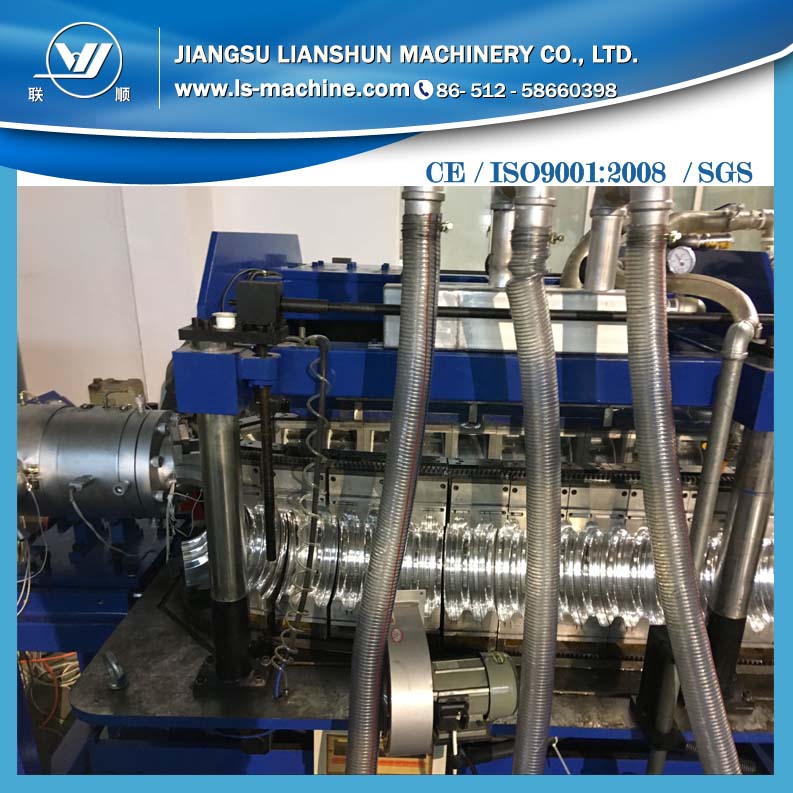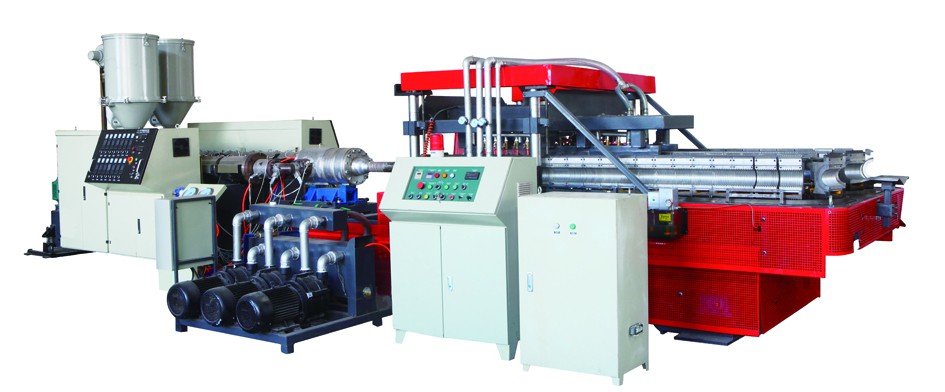3. 波紋管成型機(jī):采用臥式結(jié)構(gòu),鏈?zhǔn)絺鲃?dòng)設(shè)計(jì),配有開(kāi)放式水冷卻系統(tǒng)以及真空成型系統(tǒng),可保證連續(xù)生產(chǎn)時(shí)較高的生產(chǎn)速度。