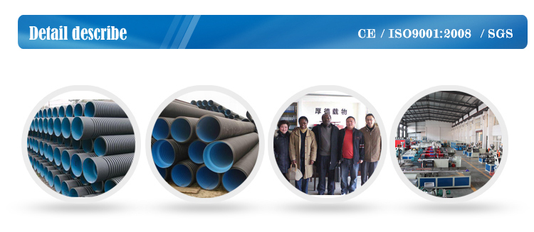 該生產(chǎn)線是以HDPE/PP為原料,所生產(chǎn)的雙壁波紋管內(nèi)壁光滑平整,外壁呈梯形波紋狀,除了具有普通塑料管所具有的耐腐蝕性好、絕緣性高、流動阻力小等特點以外,還因特殊的內(nèi)外壁中空環(huán)形結(jié)構(gòu),使其具有環(huán)剛度大、質(zhì)量輕、耐高壓、韌性好、耐磨、耐沖擊性強、不易破損、施工方便、安裝成本低、使用壽命長等特點。該雙壁波紋管一般采用擴口承插和密封圈連接,可以有效防止熱脹冷縮的影響,被廣泛應用于市政改造工程、建筑、工農(nóng)業(yè)排水、農(nóng)業(yè)節(jié)水灌溉、污水處理工程等領(lǐng)域。