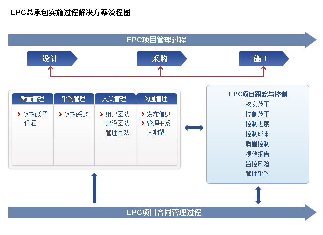 所謂EPC工程總承包項(xiàng)目指的是公司受到業(yè)主委托,按照合同的約定對(duì)工程建設(shè)項(xiàng)目的設(shè)計(jì)、采購(gòu)、施工、試運(yùn)行等全過(guò)程或者是若干階段的承包,并對(duì)整體工程的質(zhì)量、安全、費(fèi)用、進(jìn)度等全權(quán)負(fù)責(zé)。