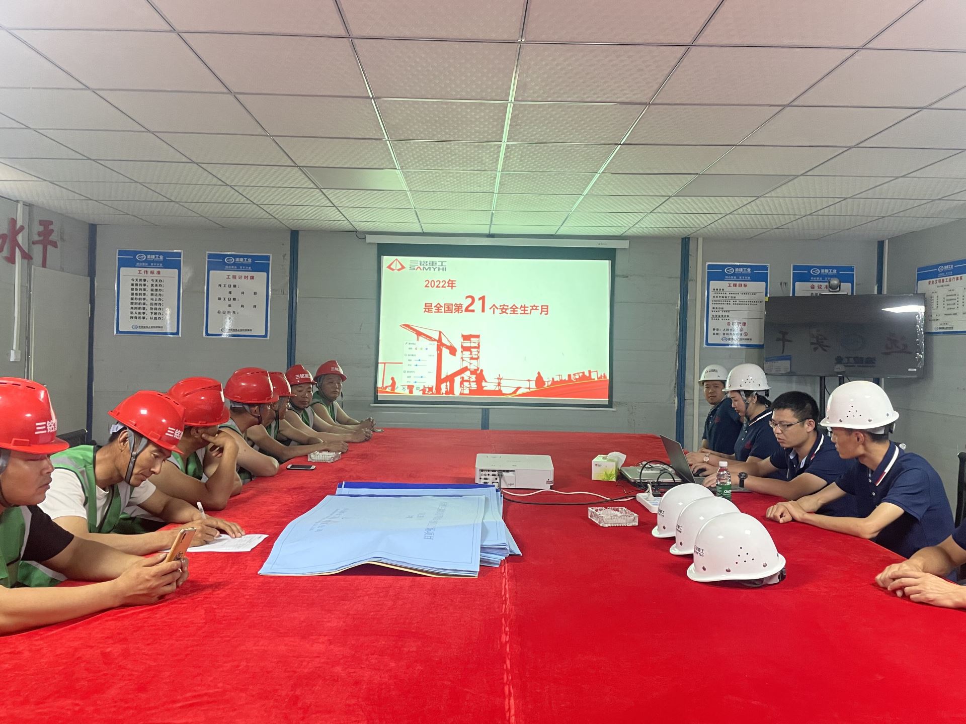 項(xiàng)目部貫徹落實(shí)全國(guó)第21個(gè)安全生產(chǎn)月主題——“遵守安全生產(chǎn)法、當(dāng)好第一責(zé)任人”,召開安全月生產(chǎn)培訓(xùn)會(huì),加強(qiáng)項(xiàng)目部安全生產(chǎn)工作氛圍,筑牢安全生產(chǎn)基礎(chǔ)。