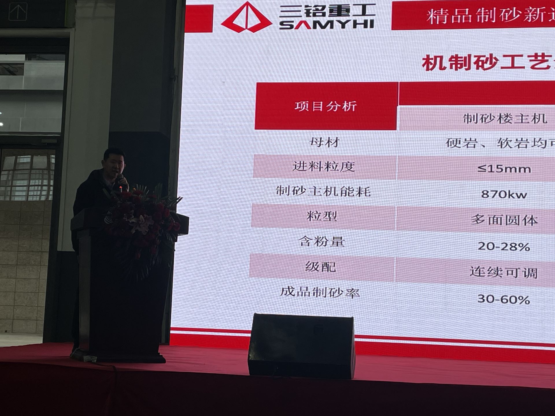 此外,三銘重工品宣部負(fù)責(zé)人周英義代表團(tuán)隊(duì)參與技術(shù)交流研討大會,作為參展商代表進(jìn)行主題演講,一針見血解決瓜米石制砂難題,贏得現(xiàn)場熱烈歡迎。