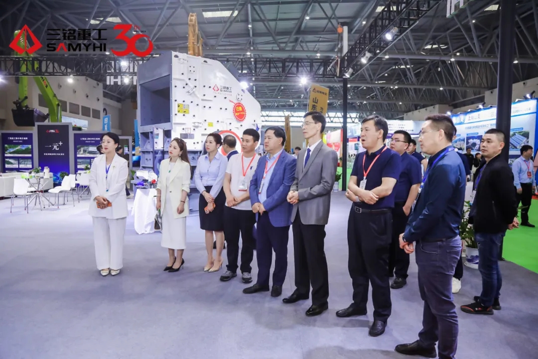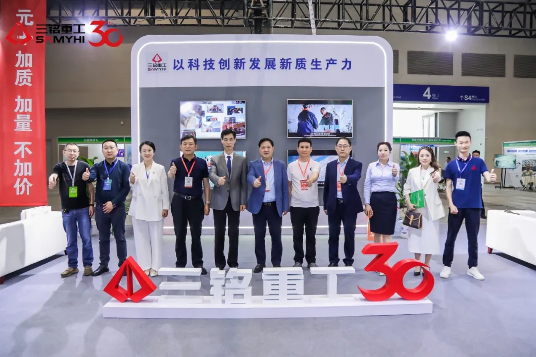 (中國砂石協(xié)會會長胡幼奕蒞臨三銘展位合影)