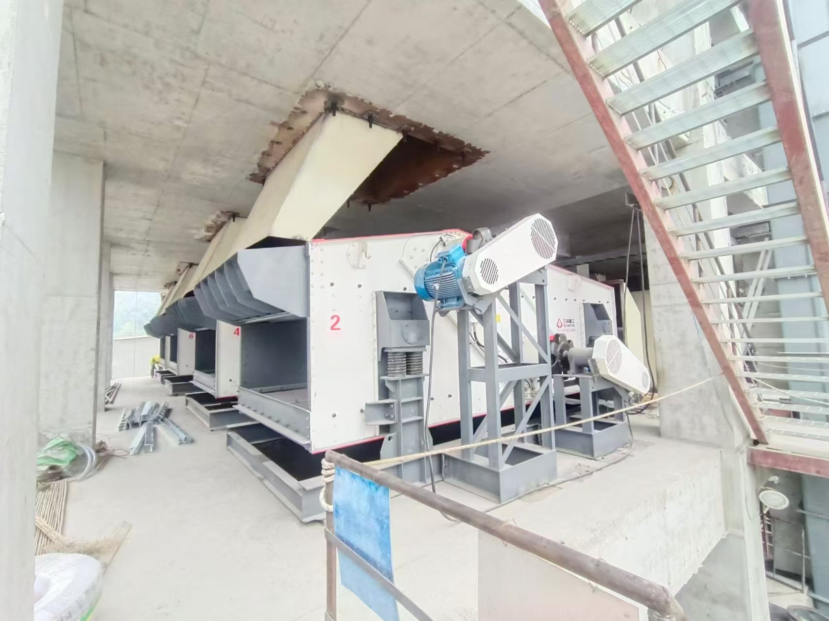 物料篩分采用8臺DES-2460水平篩,雙振幅、雙電機(jī)驅(qū)動,篩分效率高,使用壽命長。>3mm的物料輸送提升機(jī)返回到進(jìn)料倉。0-3mm的物料進(jìn)入風(fēng)選。