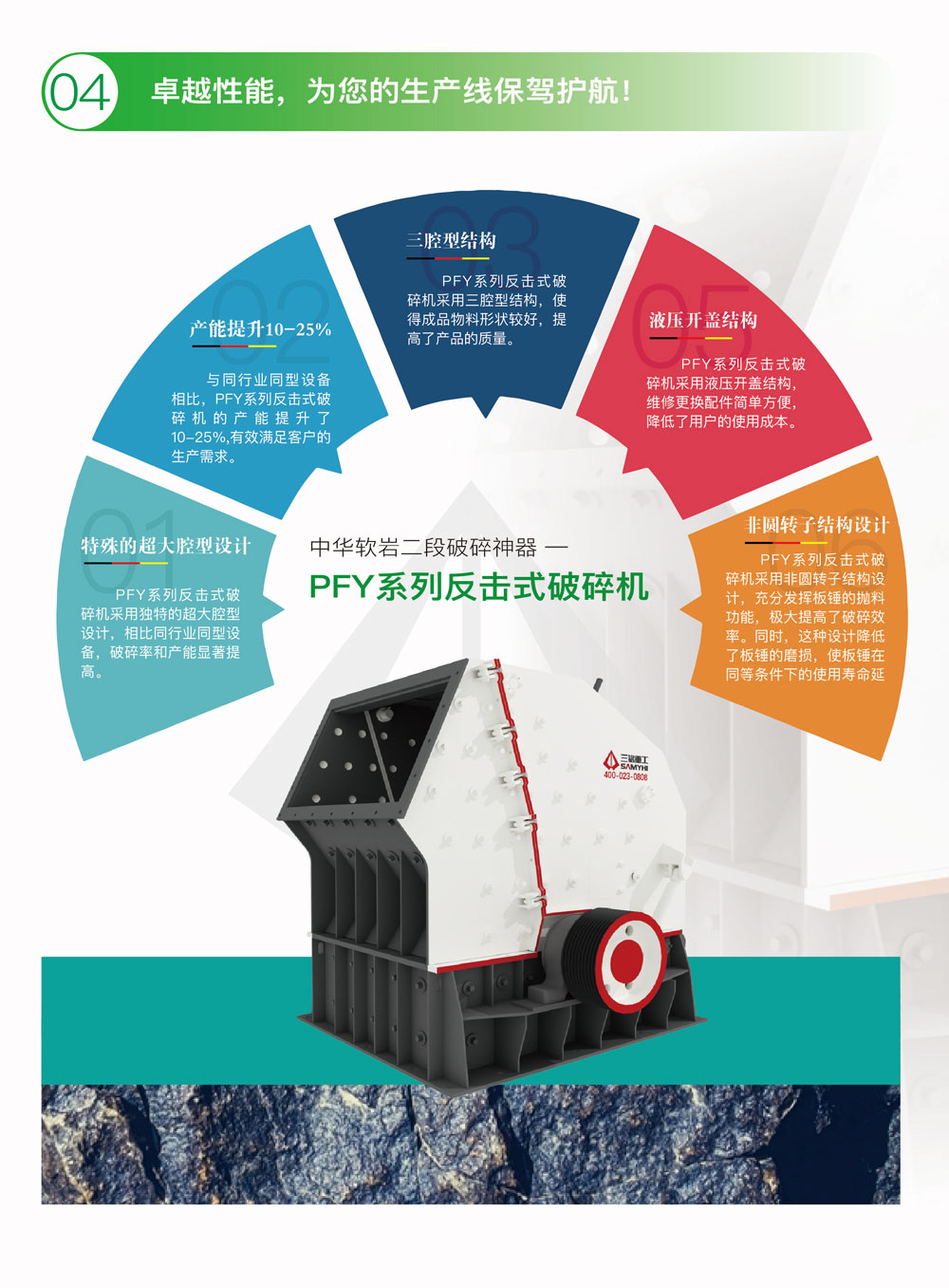 1.特殊的超大腔型設(shè)計(jì),極大地提高了破碎率與產(chǎn)能;