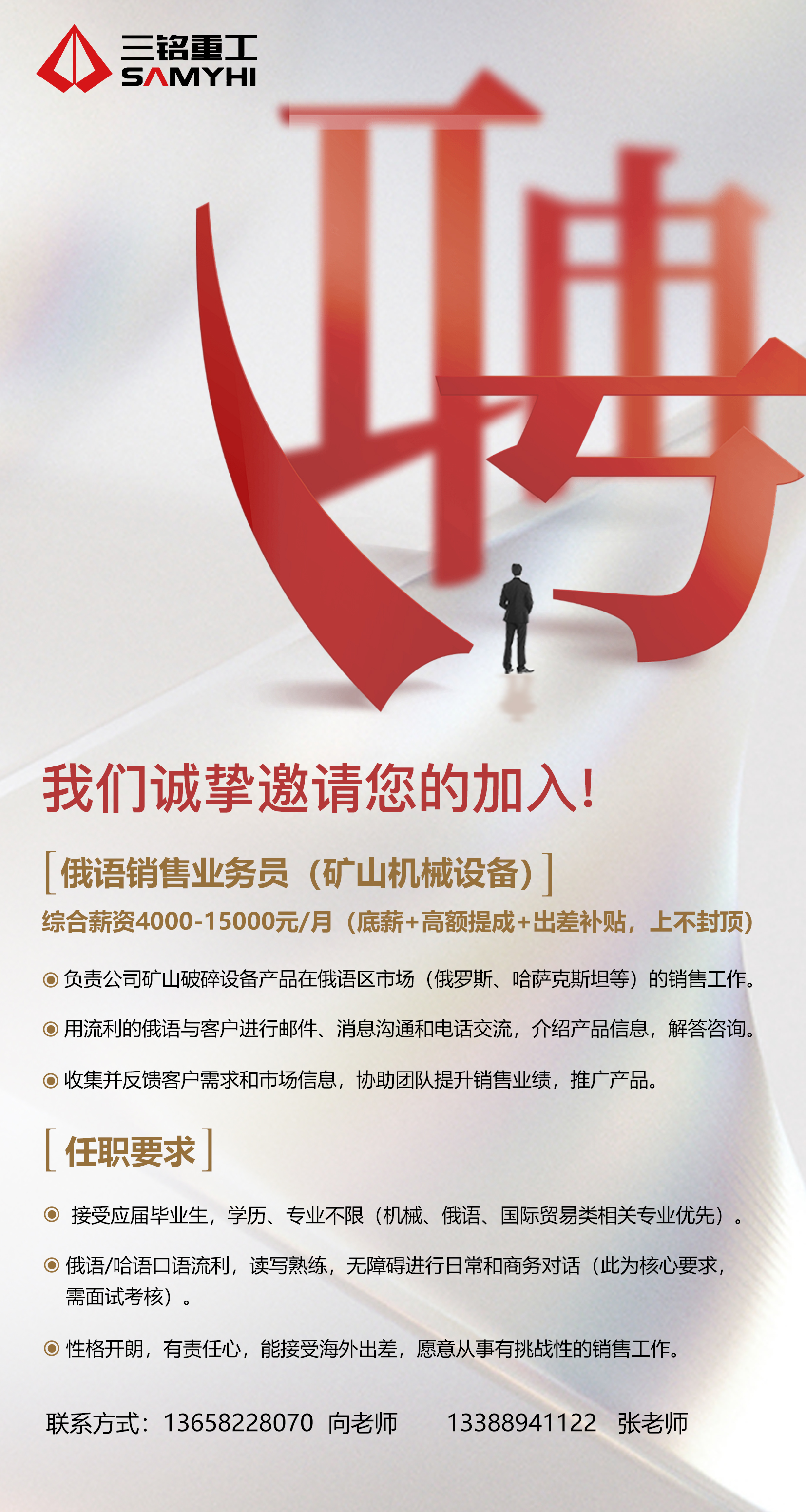 招聘:俄語銷售工程師(礦山破碎設(shè)備方向);俄語銷售業(yè)務(wù)員(礦山機(jī)械設(shè)備)
